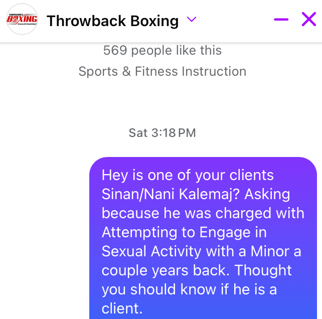 FWIW, I was able to figure out what Kalemaj is up to now. He was bragging about beating the case under an Instagram post. I confirmed it was him in direct messages and alerted the boxing gym he seems to be training at now, Throwback Boxing in Fraser, Michigan, near Detroit. I’d encourage others to contact Throwback if possible and let them know to keep an eye out for this person. He’s also going by Nani now, so this isn’t the fault of Throwback for not knowing.
